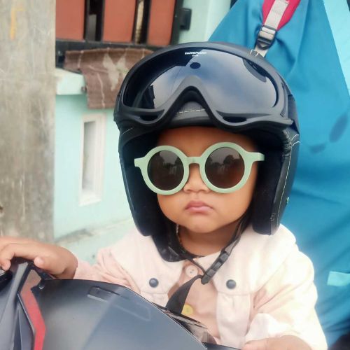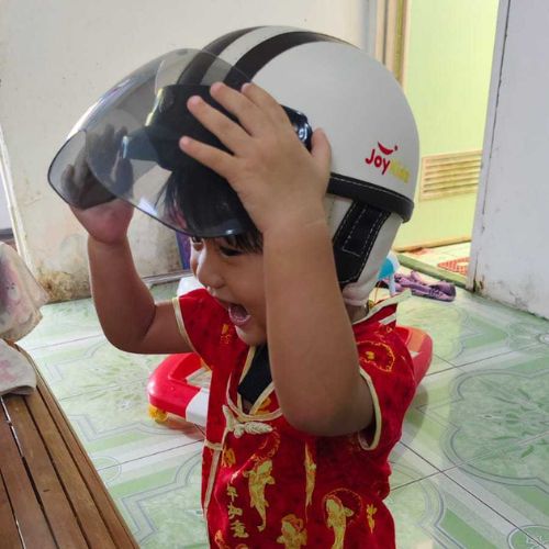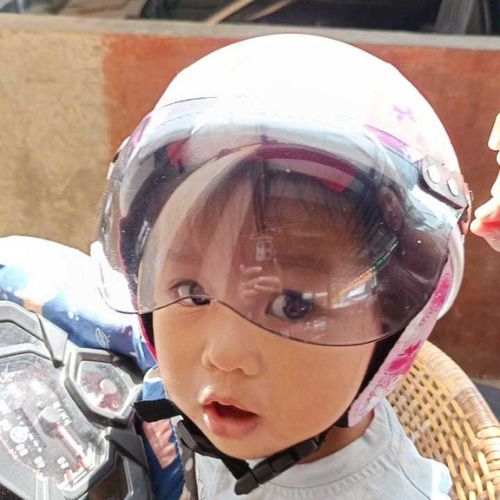 – Kalau lingkar kepalanya 50 cm atau di bawah itu, MinJoy sarankan pilih helm BOGO